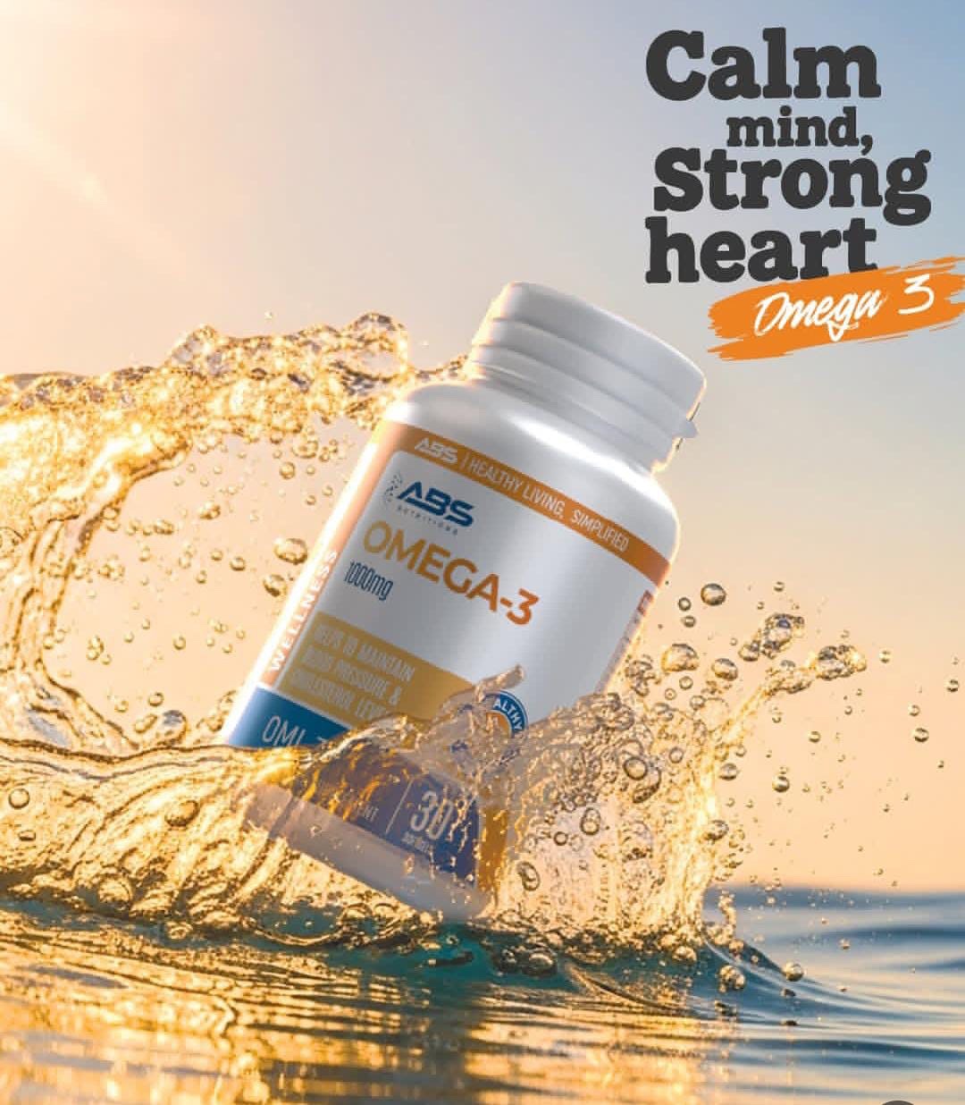 ABS Omi-3 is a premium omega-3 fish oil supplement rich in EPA and DHA. Maintains blood pressure and cholesterol levels, improves heart health and blood circulation, enhances brain function and cognitive health, protects and improves eye health and vision, and helps reduce joint pain and inflammation.