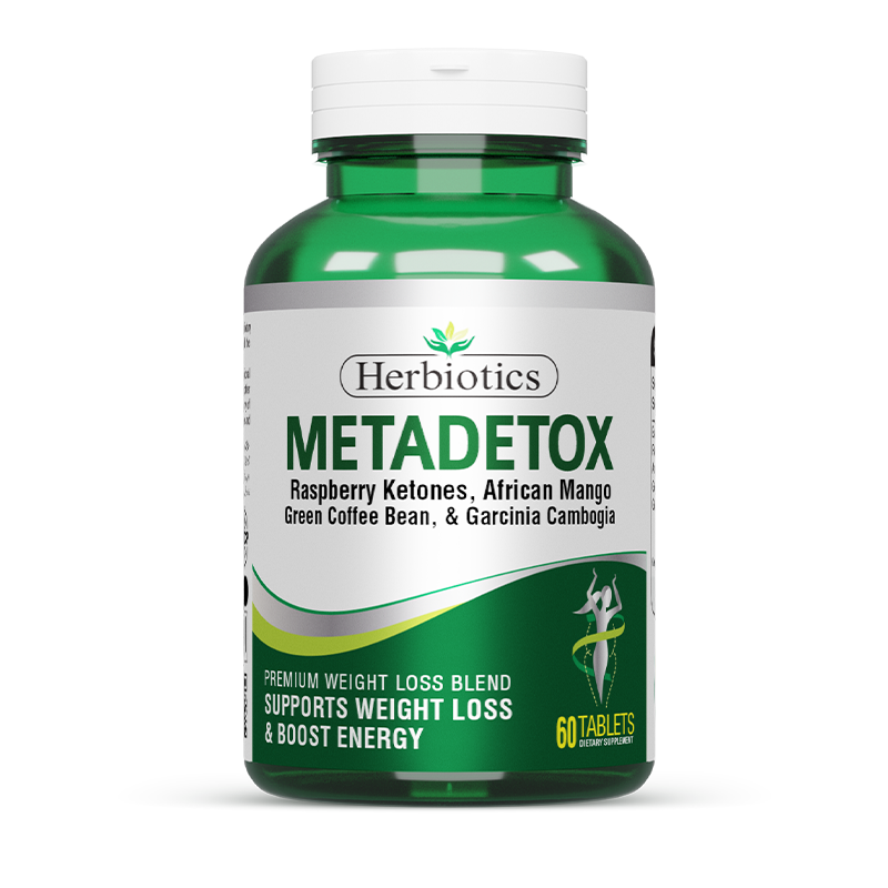 Herbiotics Metadetox supports healthy weight management, liver detox, metabolism and overall wellness. Contains African mango extract, green coffee bean extract, raspberry ketone extract, and garcinia cambogia extract to help regulate metabolism and support detoxification.